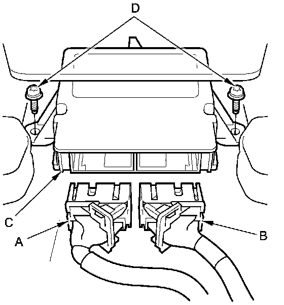 8. Remove the TORX bolts (D) using a TORX T30 bit, then remove the SRS unit from the driver's side.
