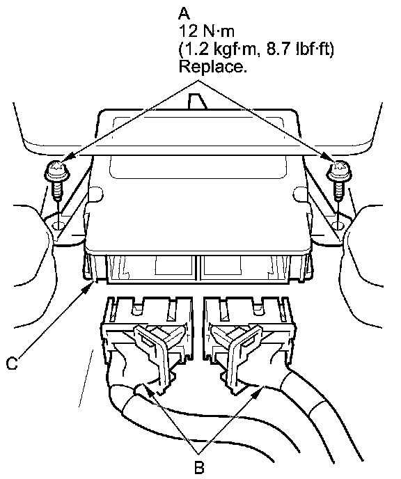 3. Connect the SRS connectors (B) to the SRS unit (C); push them into position until they click and the lever locks are fully secured.