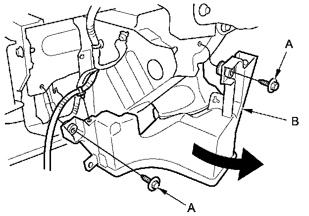 3. Left side; remove the bolts (A), then release the intake air resonator (B).