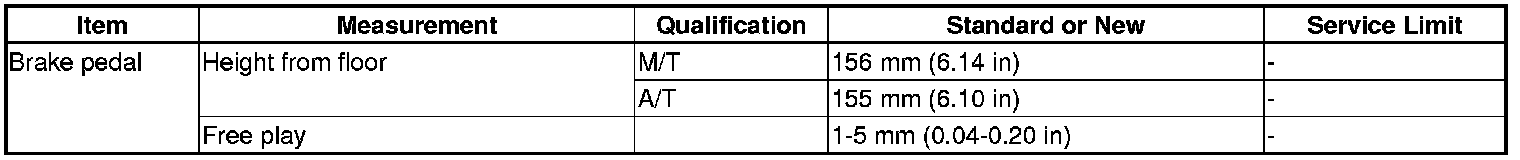 Brake Pedal Specification(s)