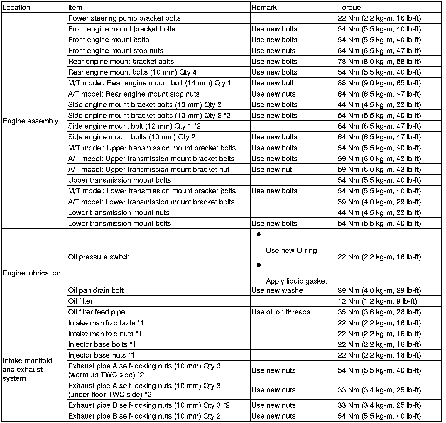 *2: Follow the procedures closely for torque, sequence, and special steps.