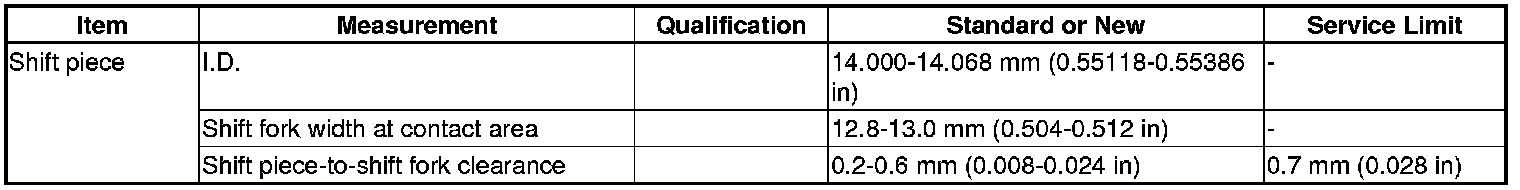 Shift Piece Specification(s) (M/T)