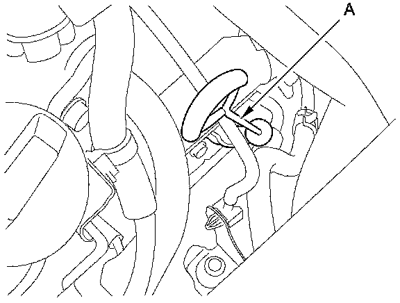 3. Remove the dipstick (yellow loop) (A) from the dipstick guide tube, and wipe it with a clean cloth.