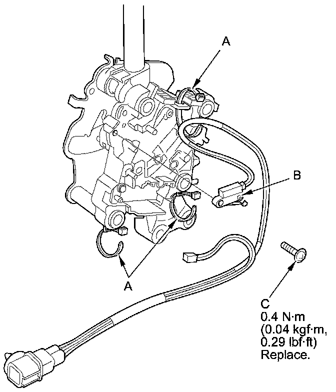 4. Install the park pin switch, and secure the park pin switch with a new screw (C).