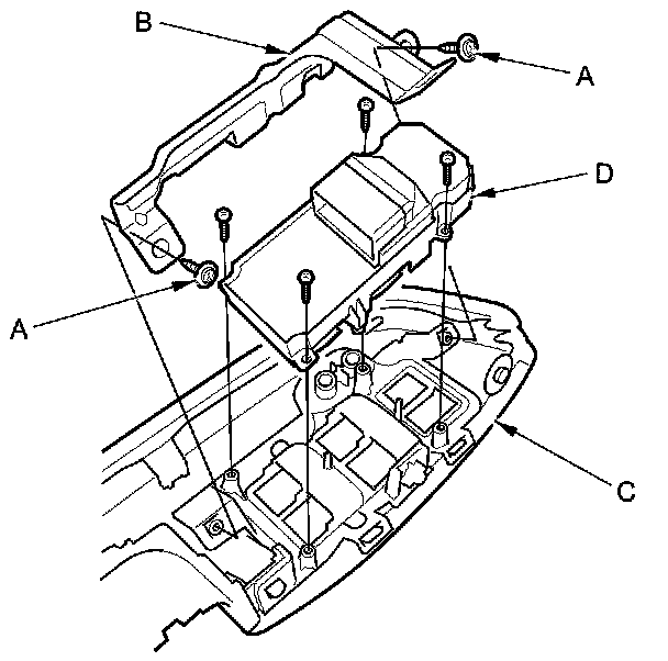 3. Remove the four screws and the power window master switch (D).