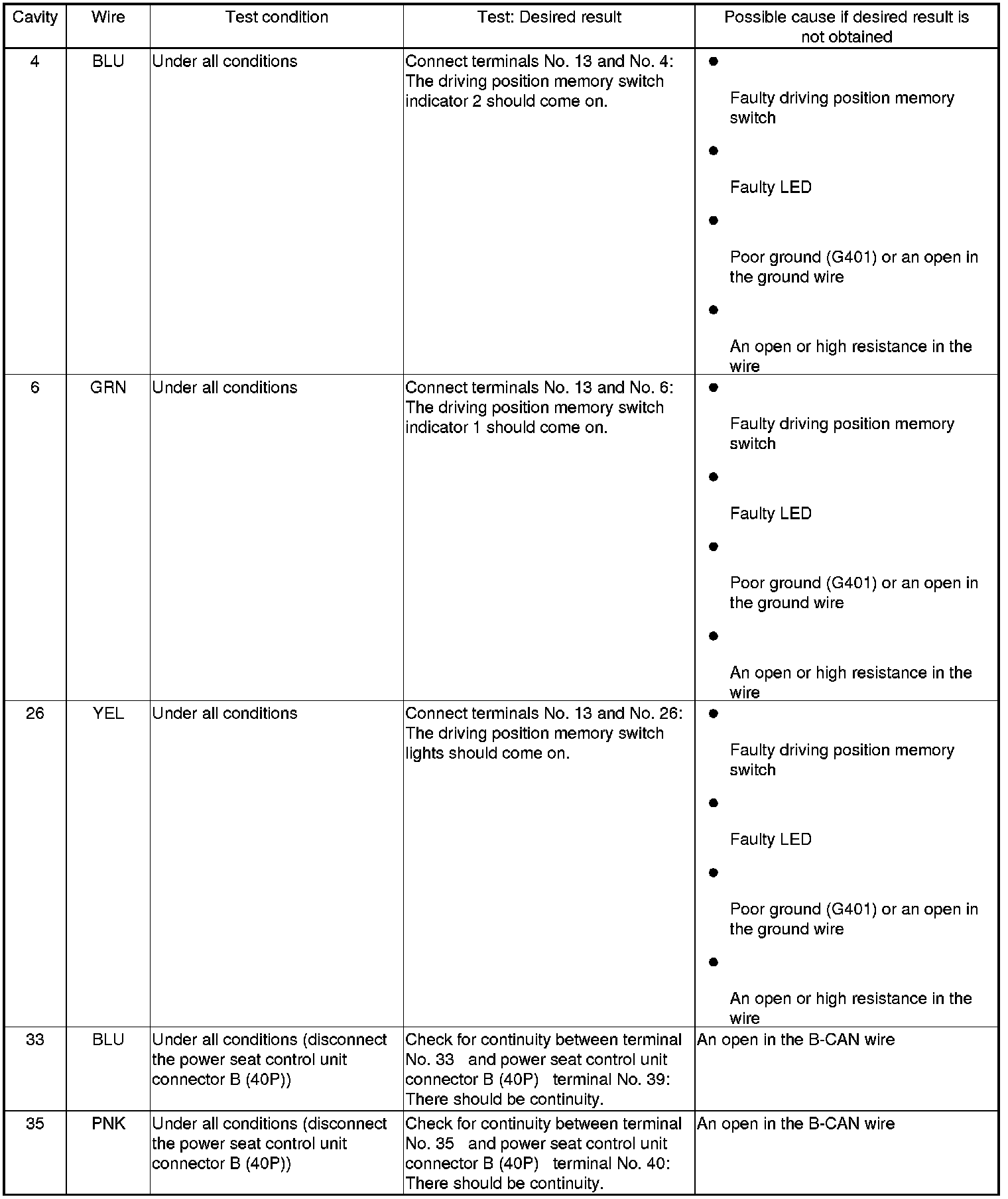 Driving Position Memory System (Door Multiplex Control Unit) Input Test