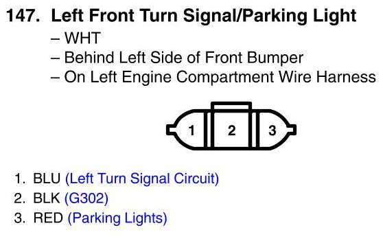 View 147 - Left Front Turn Signal/Parking Light Connector View