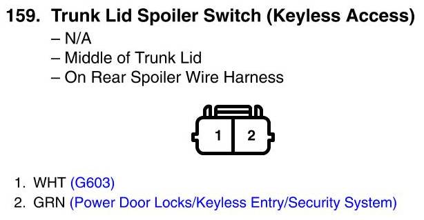 View 159 - Trunk Lid Spoiler Switch Connector View (Keyless Access)