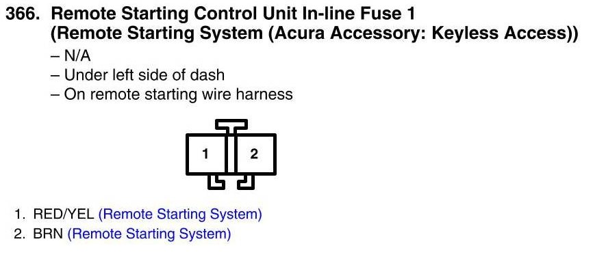 View 366 - Remote Starting Control Unit In-Line Fuse 1 Connector View (Remote Starting System (Acura Accessory: Keyless Access)