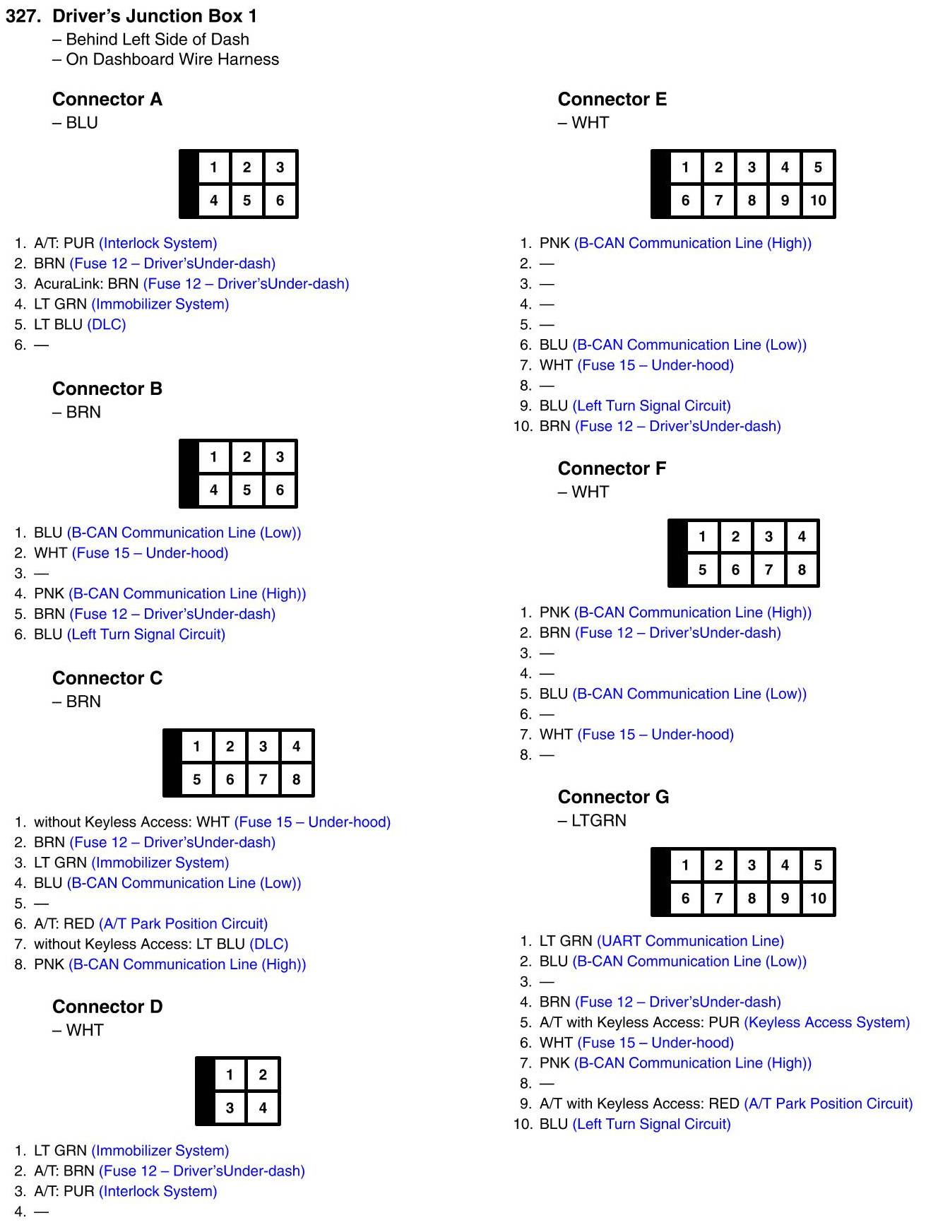 Driver's Junction Box 1 Connector View