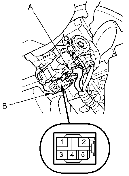3. Disconnect the 5P connector (A) from the ignition switch (B).