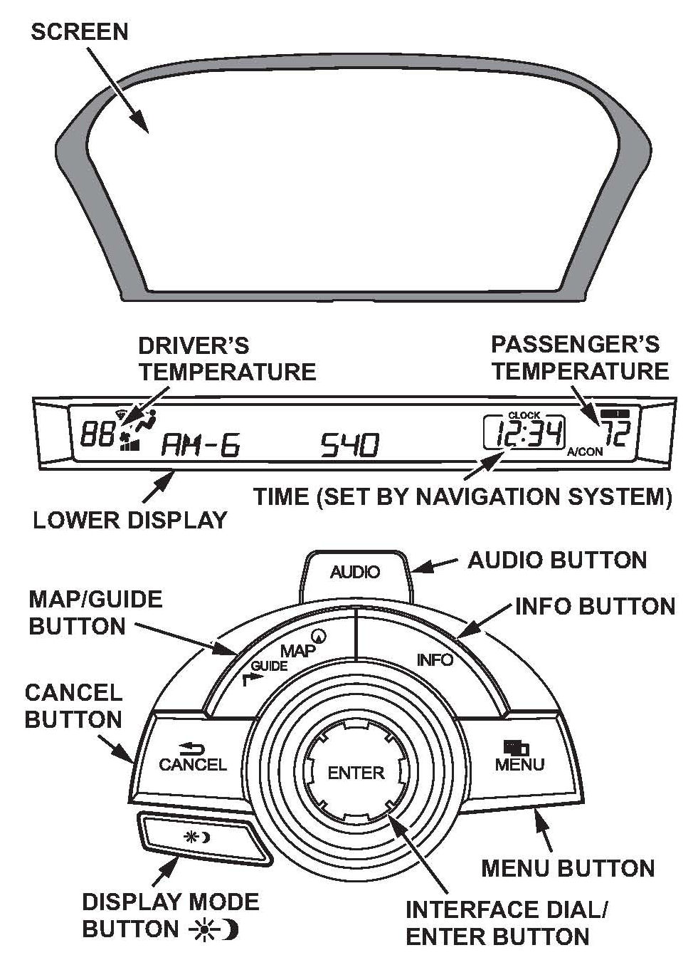 The buttons listed above are used in this service bulletin. For more information on the button functions, see Getting Started in the navigation manual.
