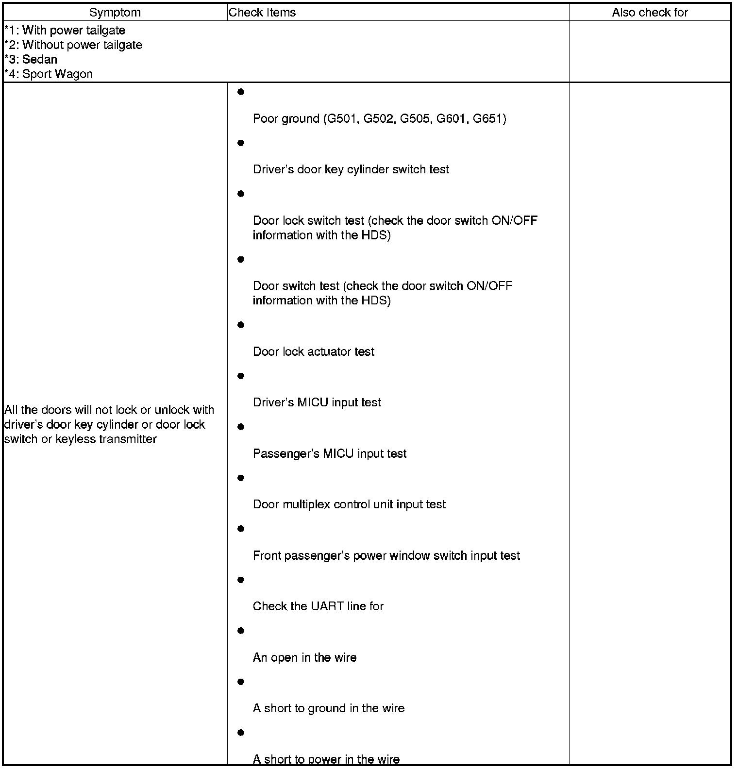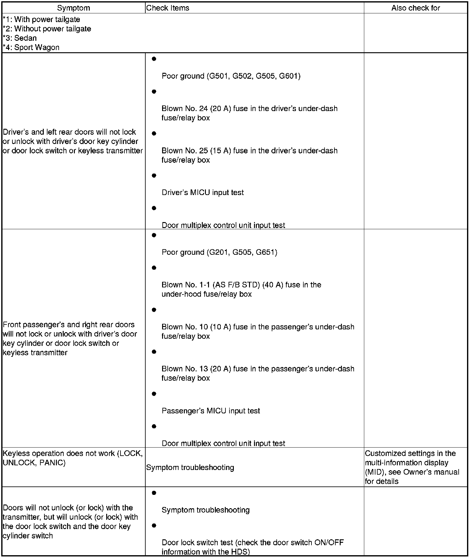 2. If the door lock system and the keyless operation do not work, troubleshoot the door locks first.