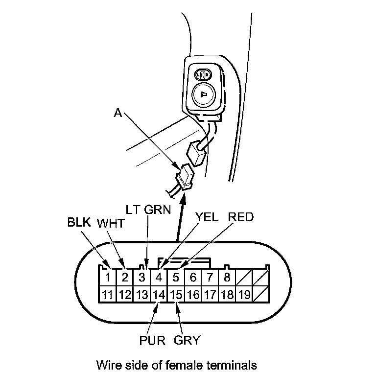 2. Disconnect the 20P connector (A) from the driver's door subharness.