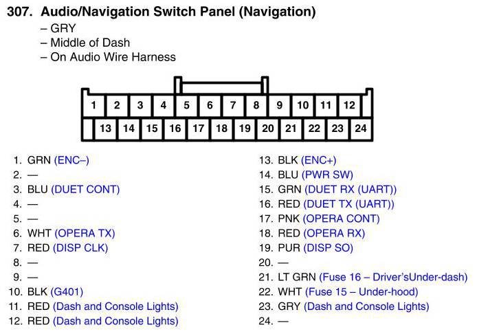 View 307 - Audio/Navigation Switch Panel Connector View (Navigation)