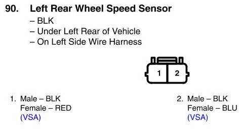 View 90 - Left Rear Wheel Speed Sensor Connector View