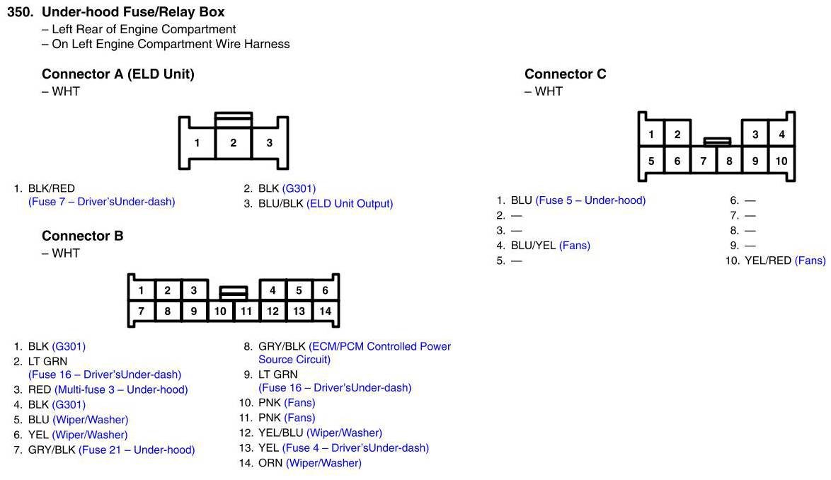Under-hood Fuse/Relay Box Connector View