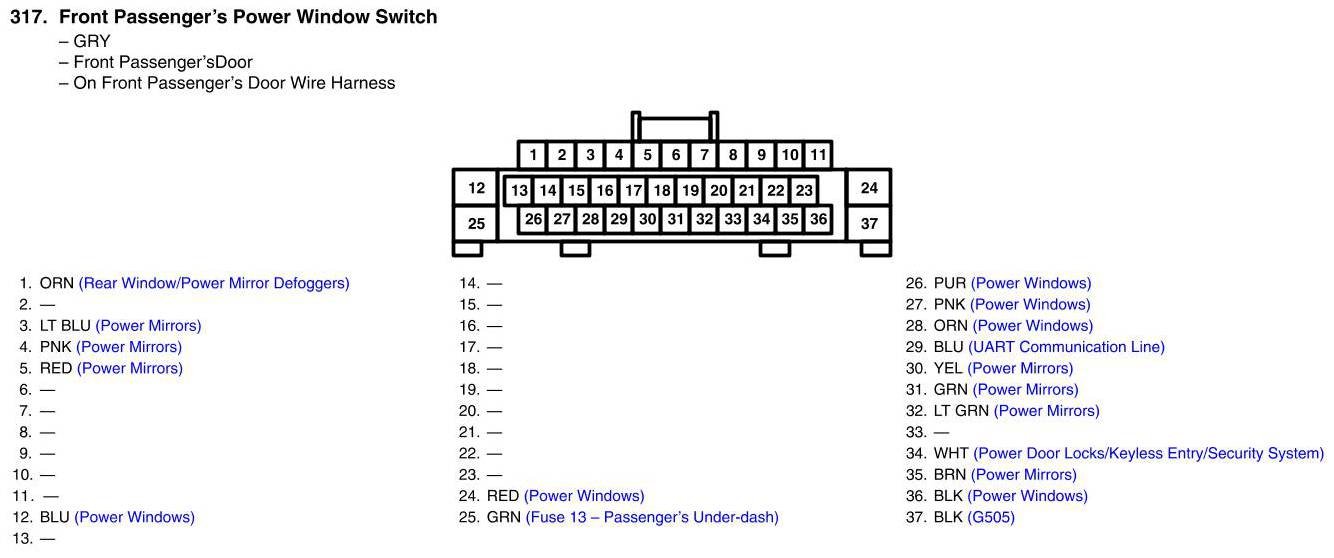 Front Passenger's Power Window Switch Connector View