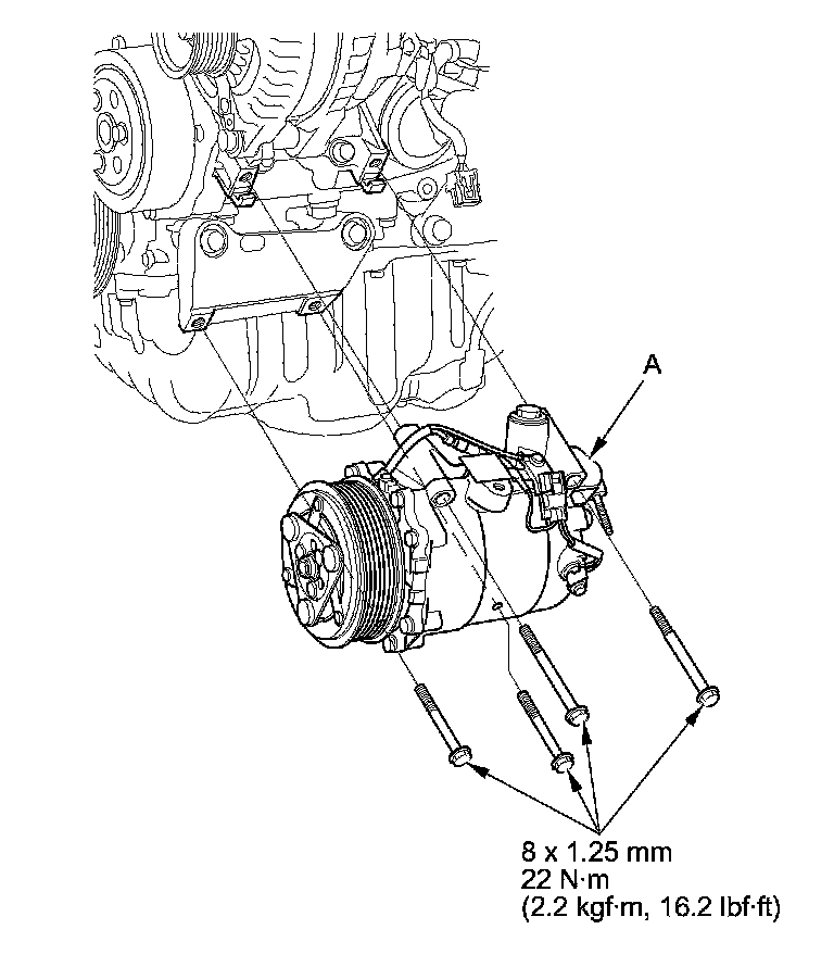 8. Install the A/C compressor in the reverse order of removal, and note these items: