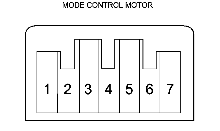 4. Measure the resistance between terminals No. 5 and No. 7 of the mode control motor. It should be between 4.2 and 7.8 kOhms.