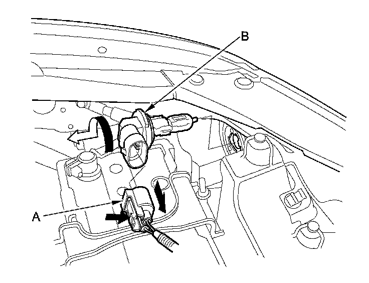 3. Turn the bulb socket (B) 45 ° counterclockwise to remove the bulb.