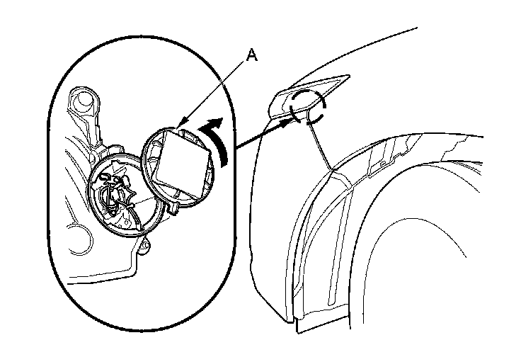 2. Turn the cover (A) 45 ° counterclockwise to remove it from the headlight assembly.