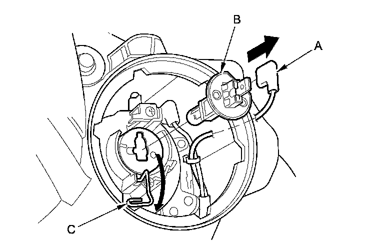 4. Pull the retaining spring (C) away from the bulb then remove the bulb.