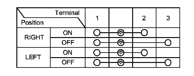 5. Check for continuity between the terminals in each switch position according to the table.