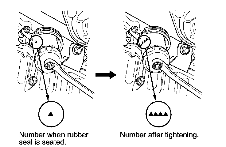 - Spin the filter on until its seal lightly seats against the oil filter base, and note which number or mark is at the bottom.