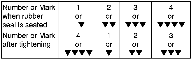 7. If four numbers or marks (1 to 4 or V to VVVV) are printed around the outside of the filter, use the following procedure to tighten the filter: