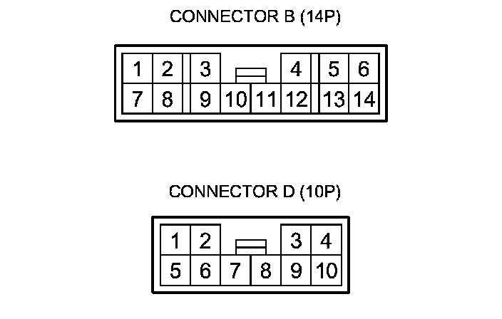 2. Disconnect the under-hood fuse/relay box connectors B (14P) and D (10P).
