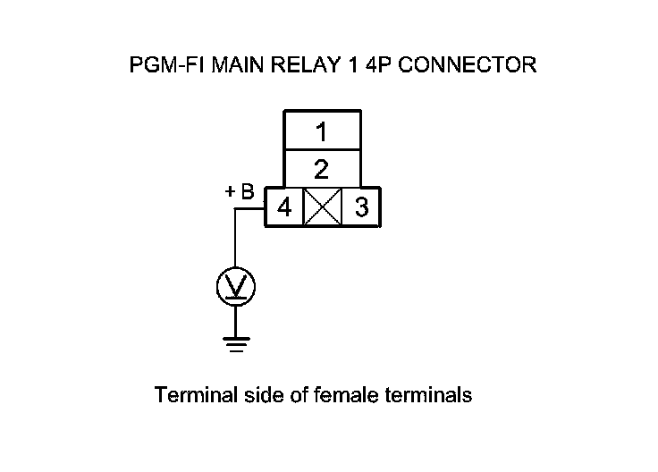 67. Measure the voltage between PGM-FI main relay 1 4P connector terminal No. 1 and body ground.