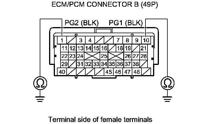 22. Check for continuity between body ground and these connector terminals: