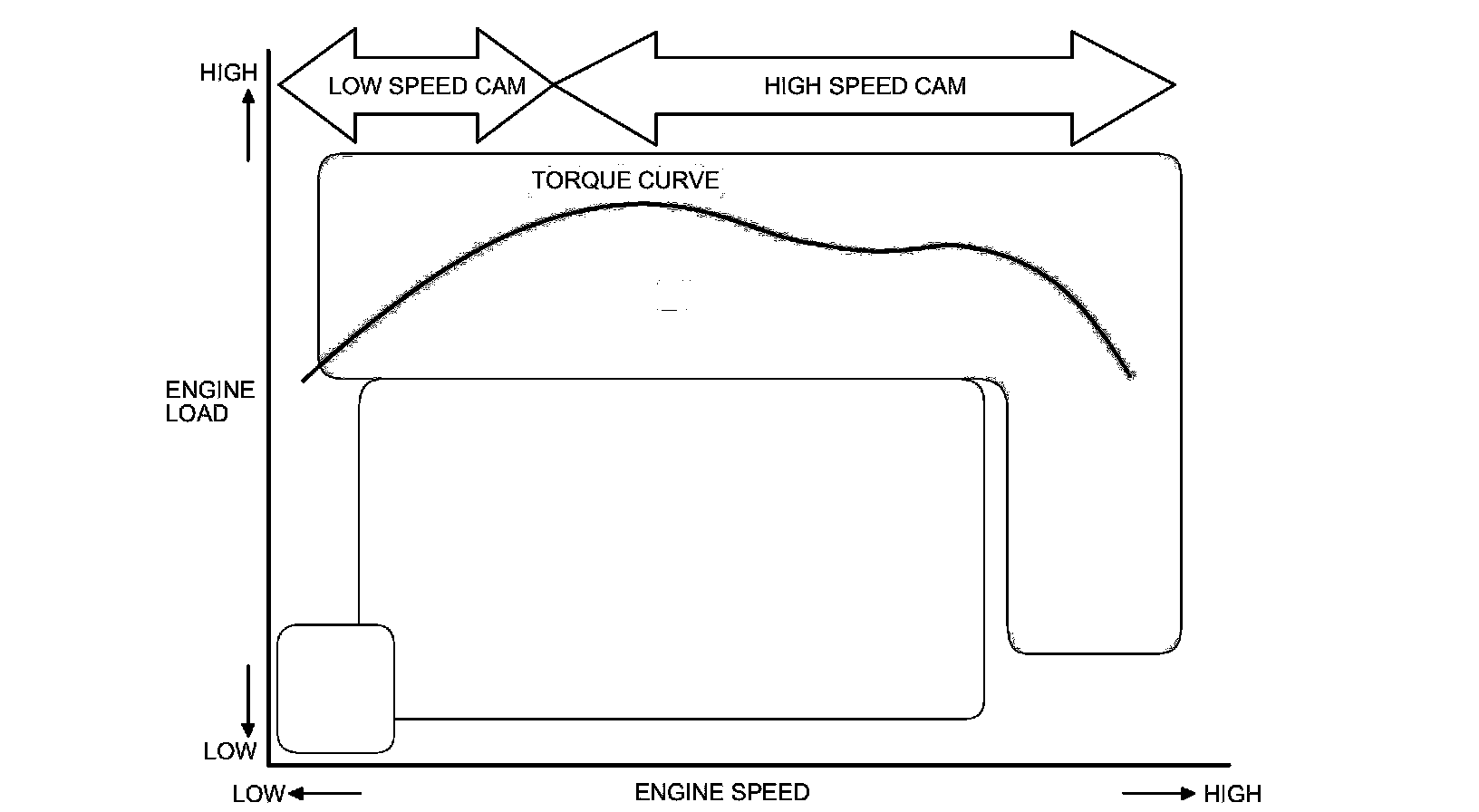 - The low lift cam is used at low engine speeds, and the high lift cam is used at high engine speeds.