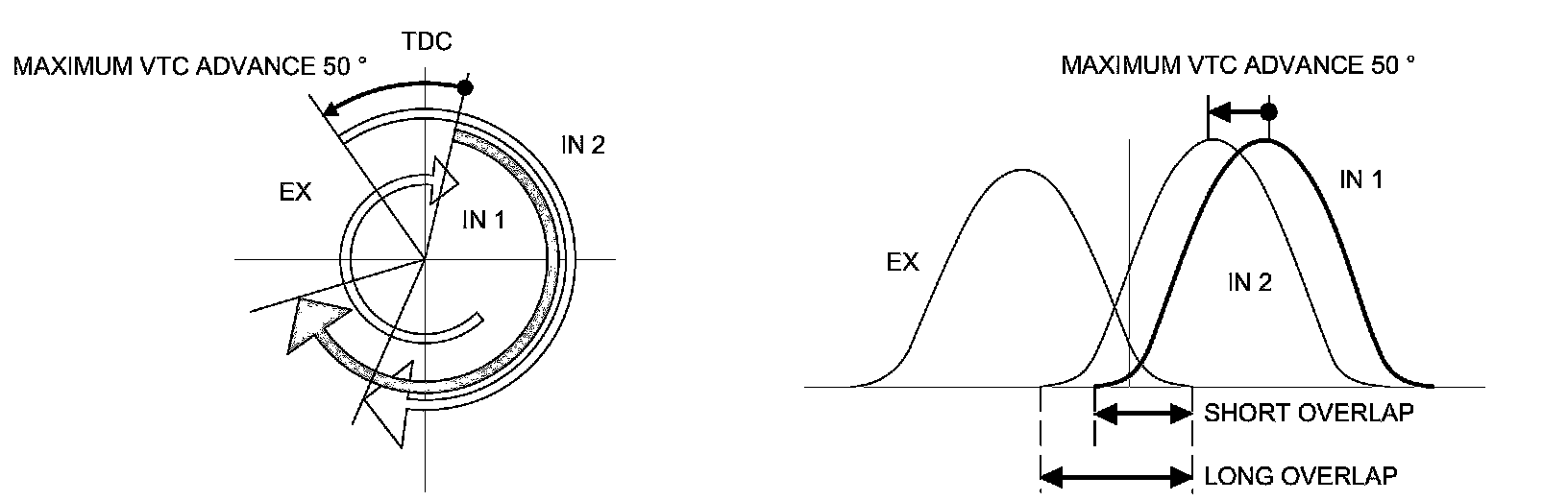 - If a malfunction occurs, the VTC system control is disabled and the valve timing is fixed at the fully retarded position.