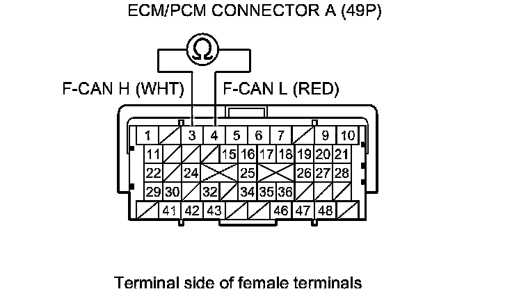 14. Measure the resistance between ECM/PCM connector terminals A3 and A4.