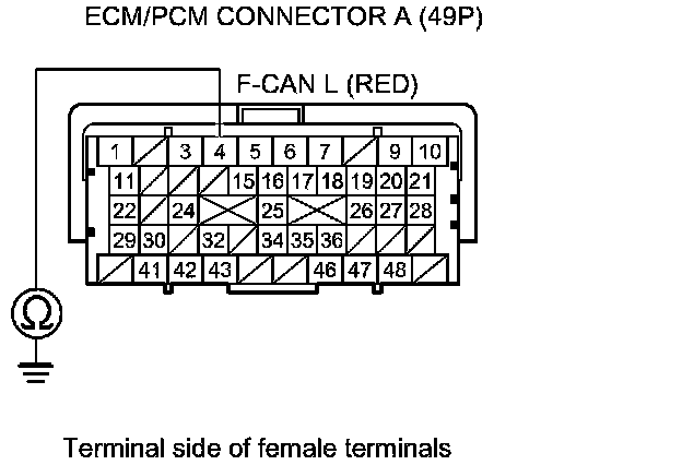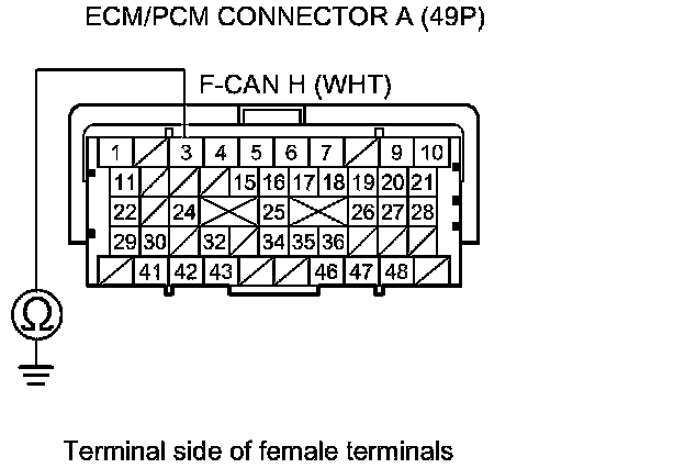 16. Check for continuity between ECM/PCM connector terminal A3 and body ground.