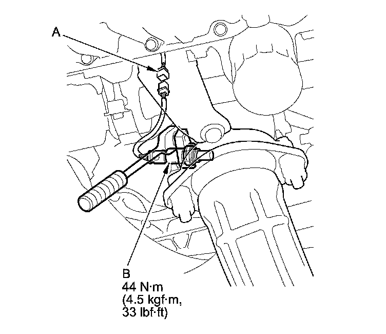 2. Disconnect the secondary HO2S 4P connector (A), then remove secondary HO2S (B).