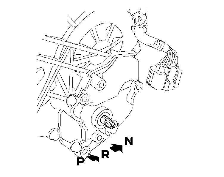 6. Make sure the selector control shaft is in the N position. If necessary, move the shift lever from P to N.