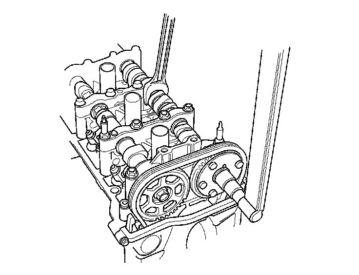 10. Carefully tip up the intake camshaft on the transmission side of the engine until there is enough slack in the chain to lift the chain off of the VTC actuator's teeth.