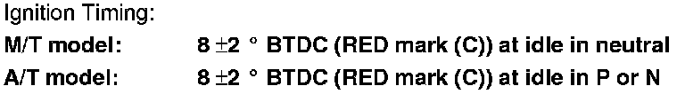 10. If the ignition timing differs from the specification, check the cam timing. If the cam timing is OK, update the ECM/PCM if it does not have the latest software ECM/PCM Update (M/T), or substitute a known-good ECM/PCM, then recheck. If the system works properly, and the ECM/PCM was substituted, replace the original ECM/PCM Service and Repair.