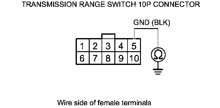 22. Check for continuity between transmission range switch 10P connector terminal No. 5 and body ground.