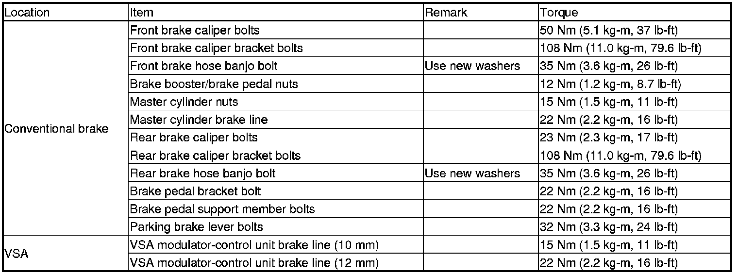 Torque Specifications