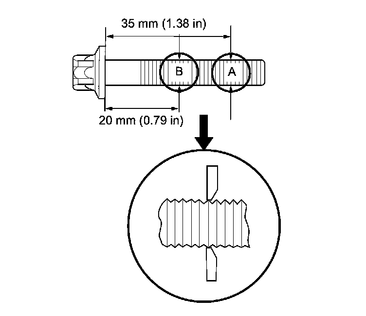 Measure the diameter of each connecting rod bolt at point A and point B.