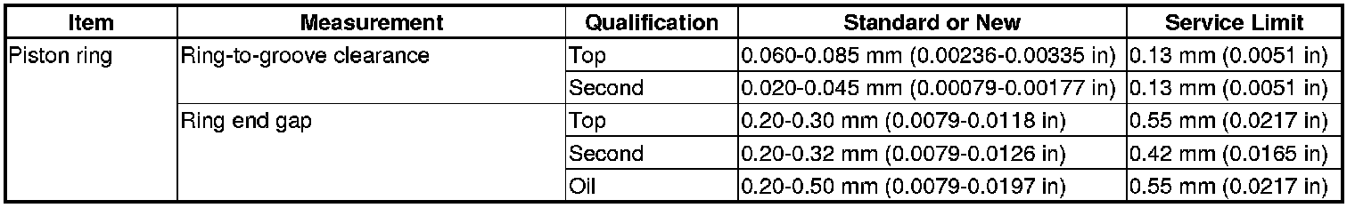 Piston Ring Specification(s)
