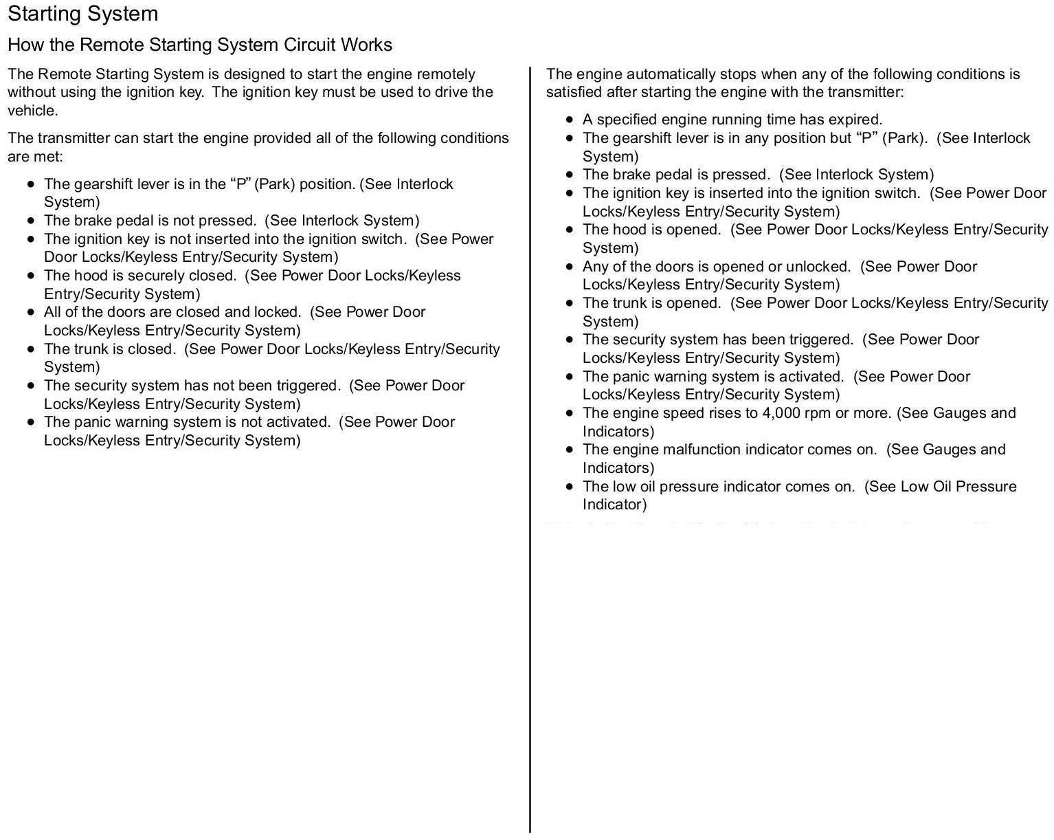 Starting System: Description and Operation