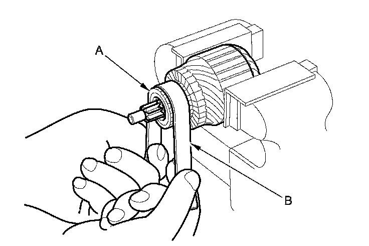 16. Install the brush into the brush holder, and set the armature (A) in the brush holder (B).