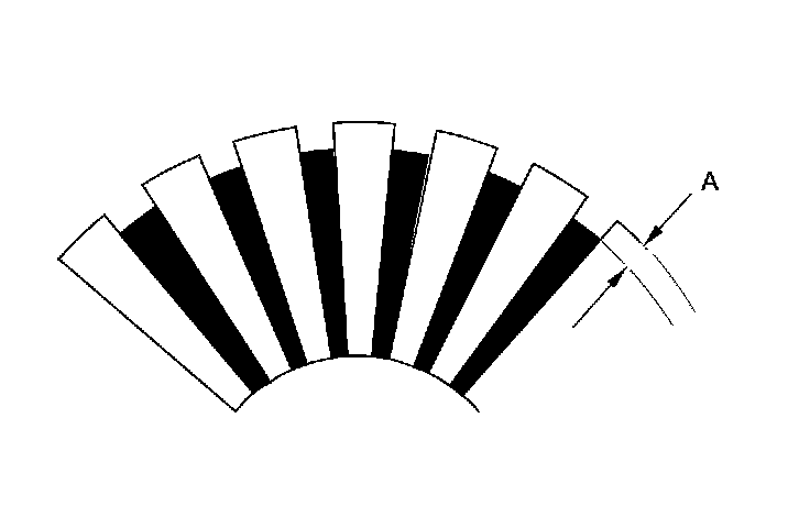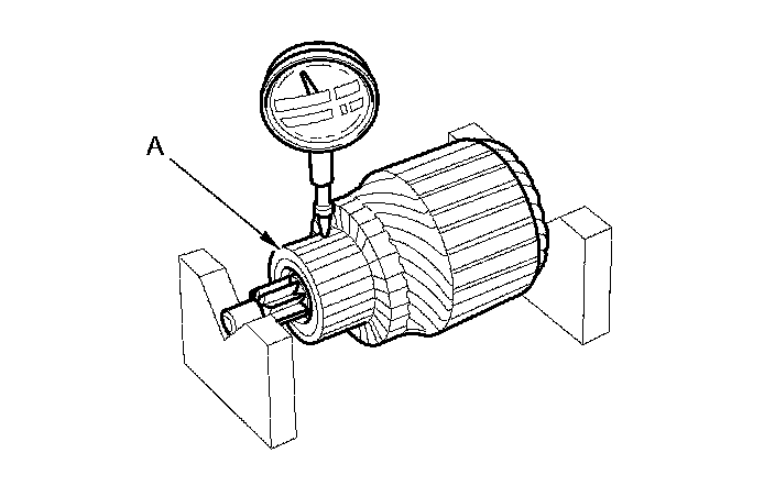 6. Use a digital caliper or dial type caliper to check the mica depth (A). If the mica depth is below the service limit, replace the armature.