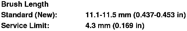 10. Measure the brush length. If it is shorter than the service limit, replace the brush holder assembly.