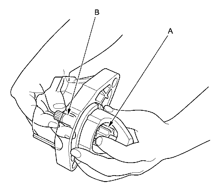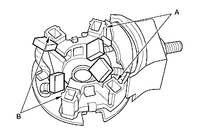 11. Check for continuity between the (+) brush holders (A) and the (-) brush holders (B). If there is continuity, replace the brush holder assembly.